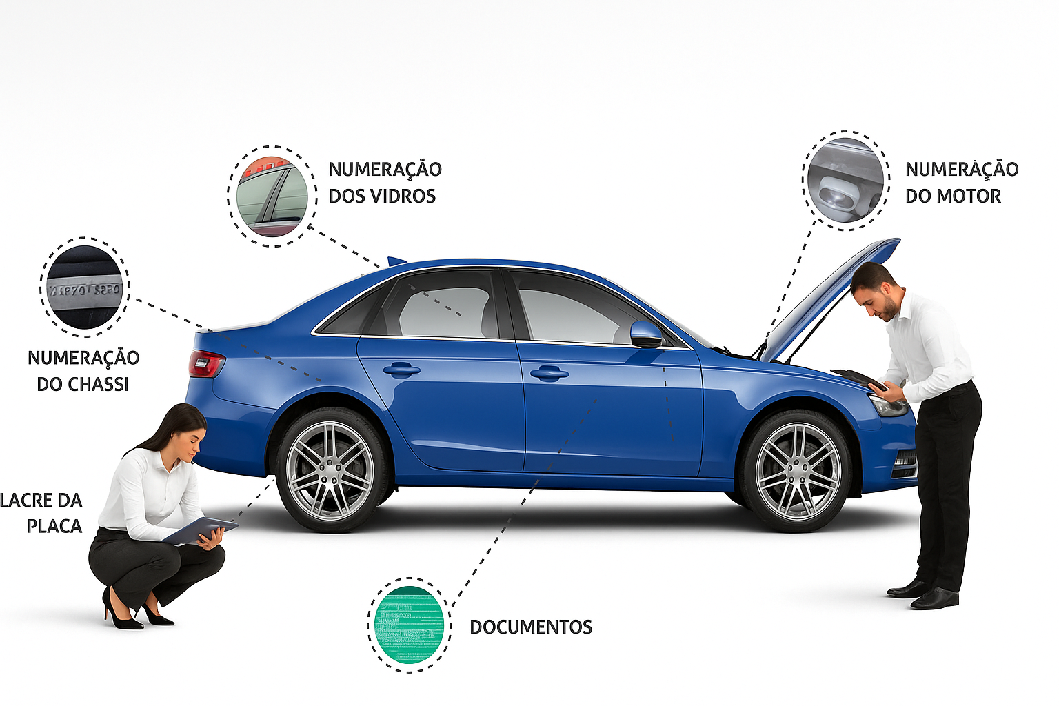 um check-up completo e minucioso do histórico e das condições físicas de um carro usado ou seminovo, não sendo obrigatória por lei, mas altamente recomendada antes da compra e venda para segurança do comprador.